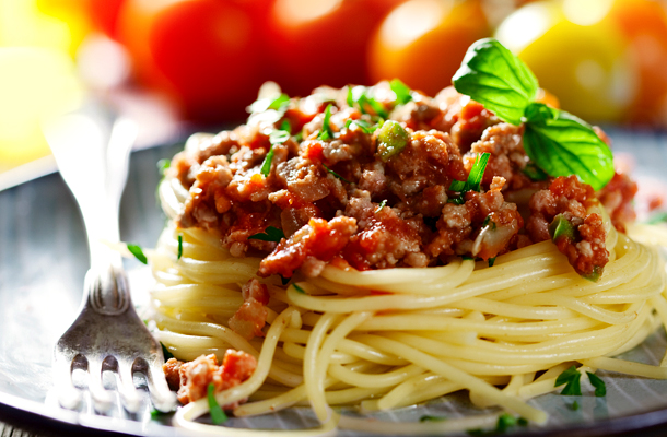 Bolognai spagettihagyma, darált(bors,só), paradicsom(babér,cukor), tésztahttp://www.mindmegette.hu/bolognai-spagetti.recept |