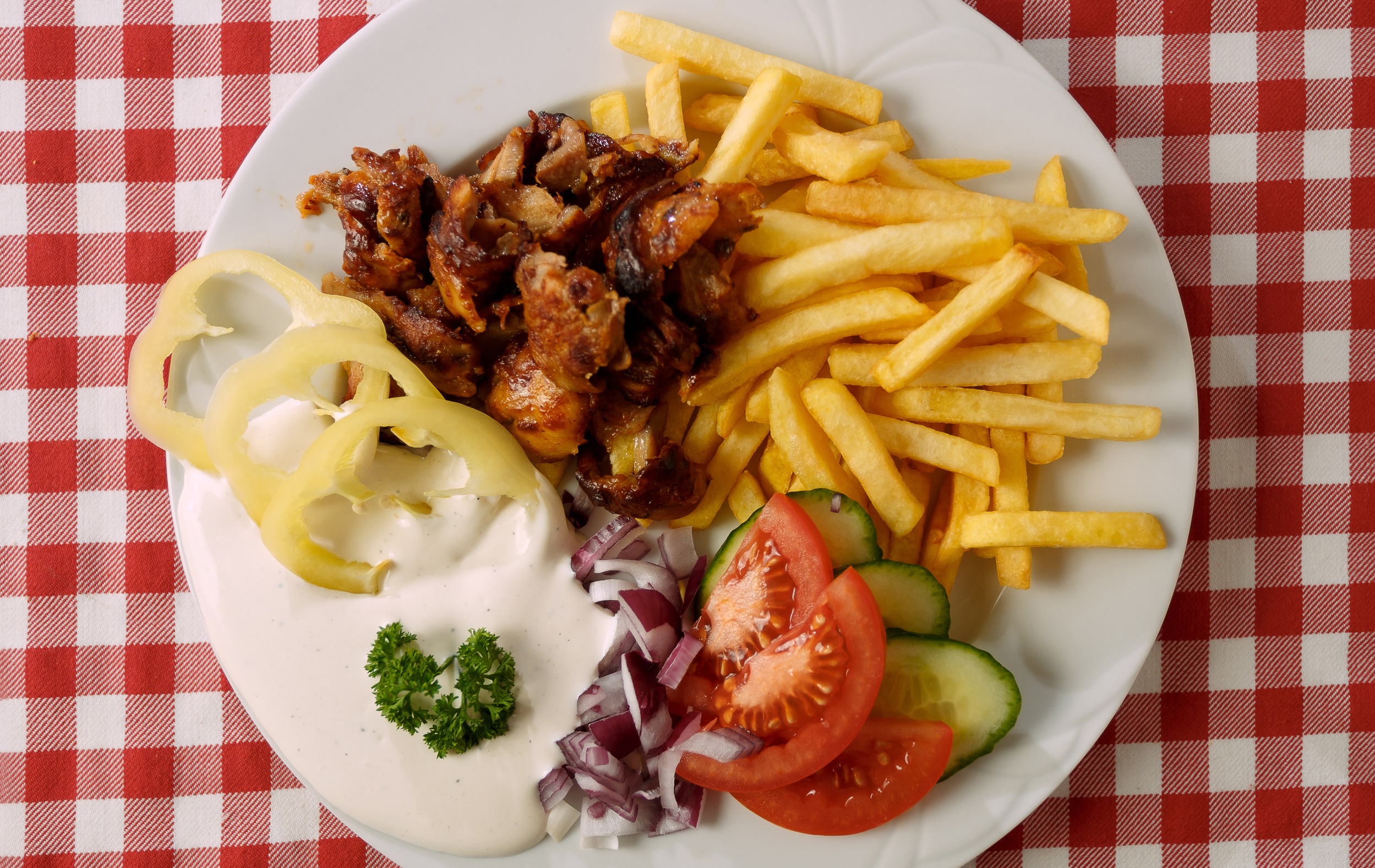 Gyros tzatzikivelmell,fuszerkev, para,kígyóubi,sali, szósz(johhurt,majonéz,oliva,fokh,chili), tzatziki(kígyóubi,kapor,...), pita/krumplihttp://www.nosalty.hu/recept/gyors-gyros |