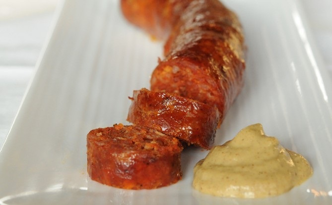 Sült kolbász párolt káposztávalkolbász, 1/3 víz, mustár, kenyér,uborka/vörös káposzta,hagyma,köményhttp://www.nosalty.hu/recept/sult-kolbasz |