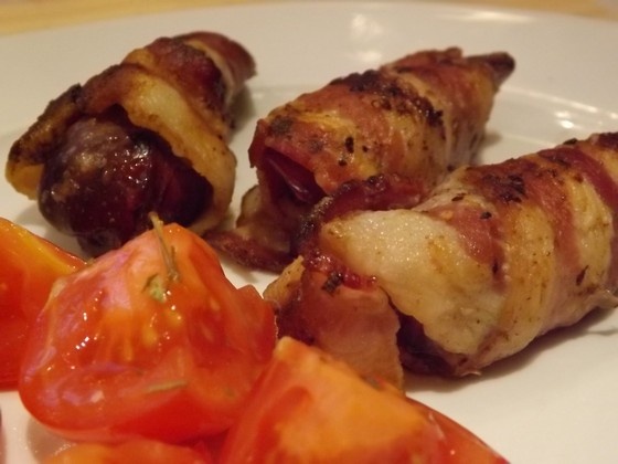 Baconbe göngyölt csirkemáj falatokmáj, majoranna, bacon, rizshttp://www.nosalty.hu/recept/baconbe-gongyolt-csirkemaj-kattikatol |