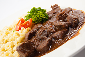 Pörkölt tarhonyával vagy bármi fozelékkelmlábszár/scomb, hagyma,lecsó, tarhonya/nokedli/fozelék: kelkáposzta,sárgaborsó,borsó,zöldbab,lencse,krumpli,...http://aprosef.hu/tokeletes_marhaporkolt_recept |