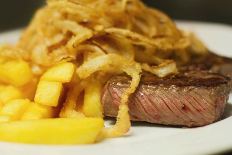Lusta vadas Kerezsi módramhátszín/bélszín(mustár,bors,olaj), krokett, áfonya,aszalt szilvahttp://www.mindmegette.hu/vadasmarha-egyszeruen.recept |