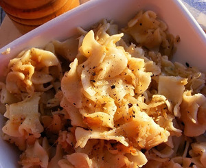 Káposztás cvekedlikáposzta, bors, cvekedli(kockatészta)http://www.mindmegette.hu/kaposztas-cvekedli.recept |